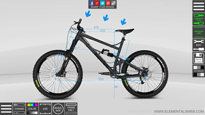 - Change colors, frame size, fork travel, wheel size