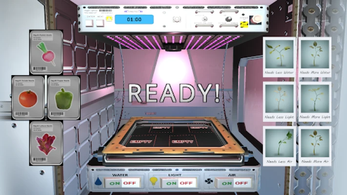 Collect mission patches for completing tasks and for making discoveries. Can you grow enough plants to create a salad for the astronauts to eat? Launch time!