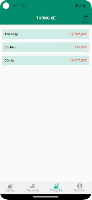 Ngoài ra ứng dụng còn có chức năng THỐNG KÊ, mọi người có thể xem lại những Doanh Thu hay những Khoảng Chi của mình trong 1 tháng hoặc 1 năm.